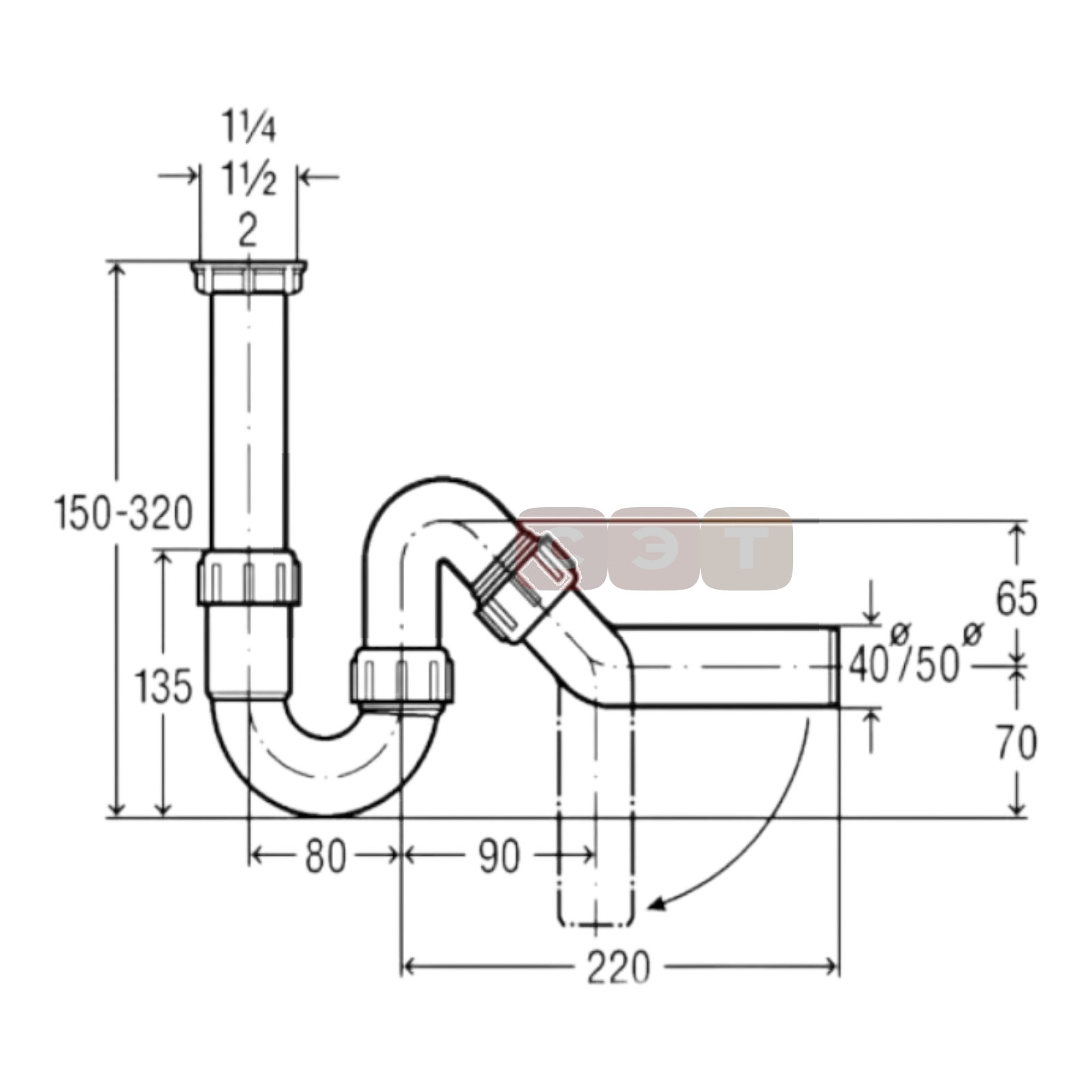 - Тип: трубный сифон.