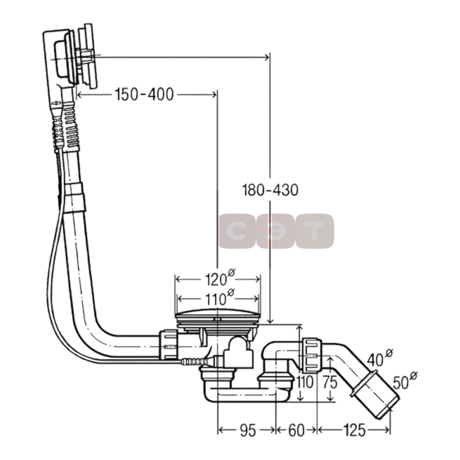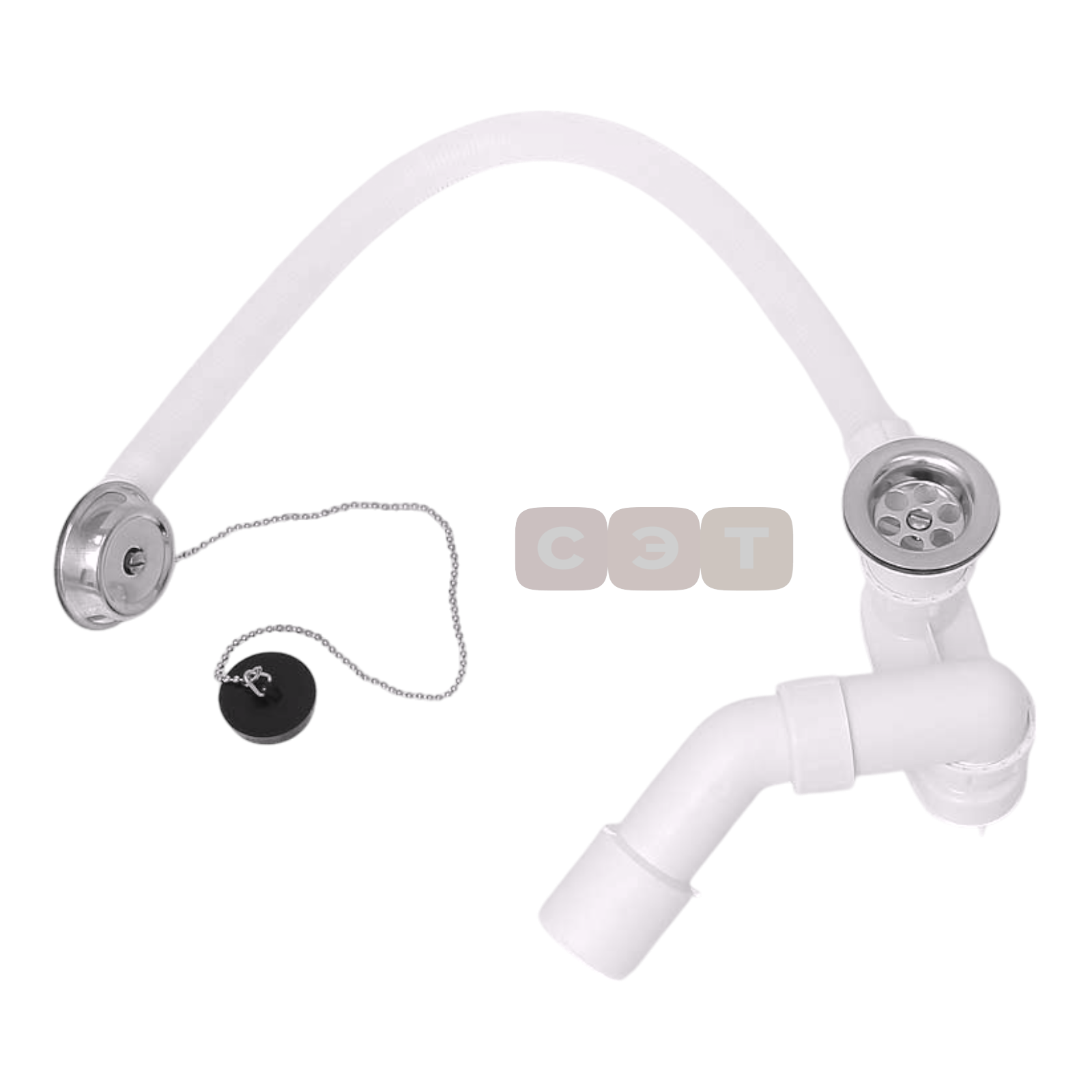 Данный слив изготовлен из прочного полипропилена, который устойчив к коррозии и механическим повреждениям. Благодаря регулировке по длине, его можно легко установить на любую ванну.