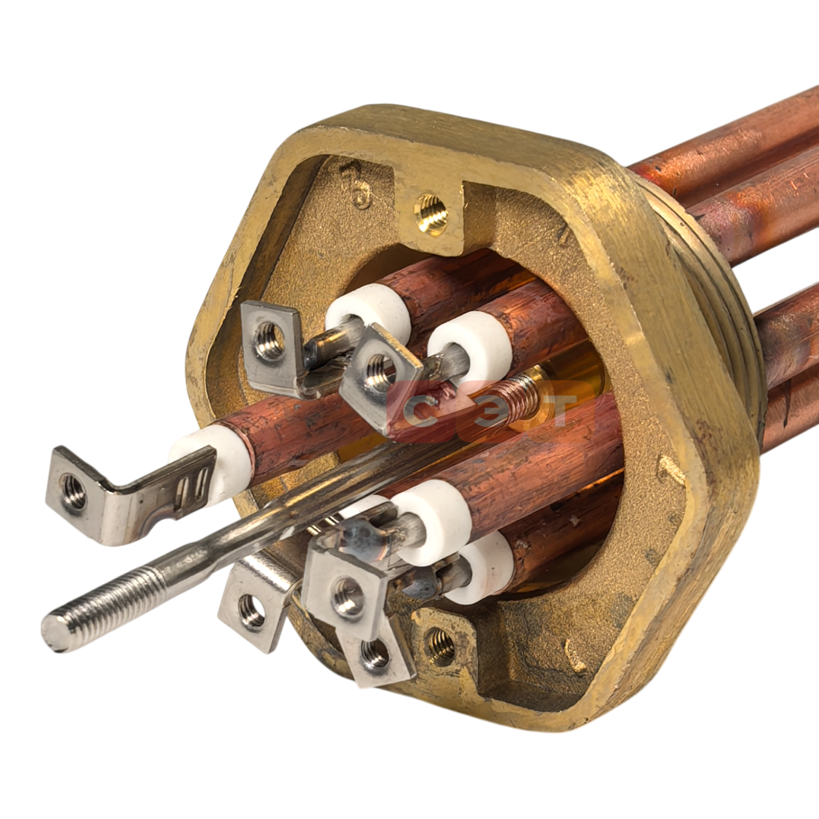 Нагревательный элемент (ТЭН) мощностью 9 кВт – это электронагревательное устройство, предназначенное для преобразования электрической энергии в тепловую. Он состоит из нагревательной спирали (обычно из нихрома) внутри металлической трубки (обычно из нержавеющей стали или меди), заполненной электроизоляционным материалом с высокой теплопроводностью (например, кварцевым песком или оксидом магния).Особенности:
